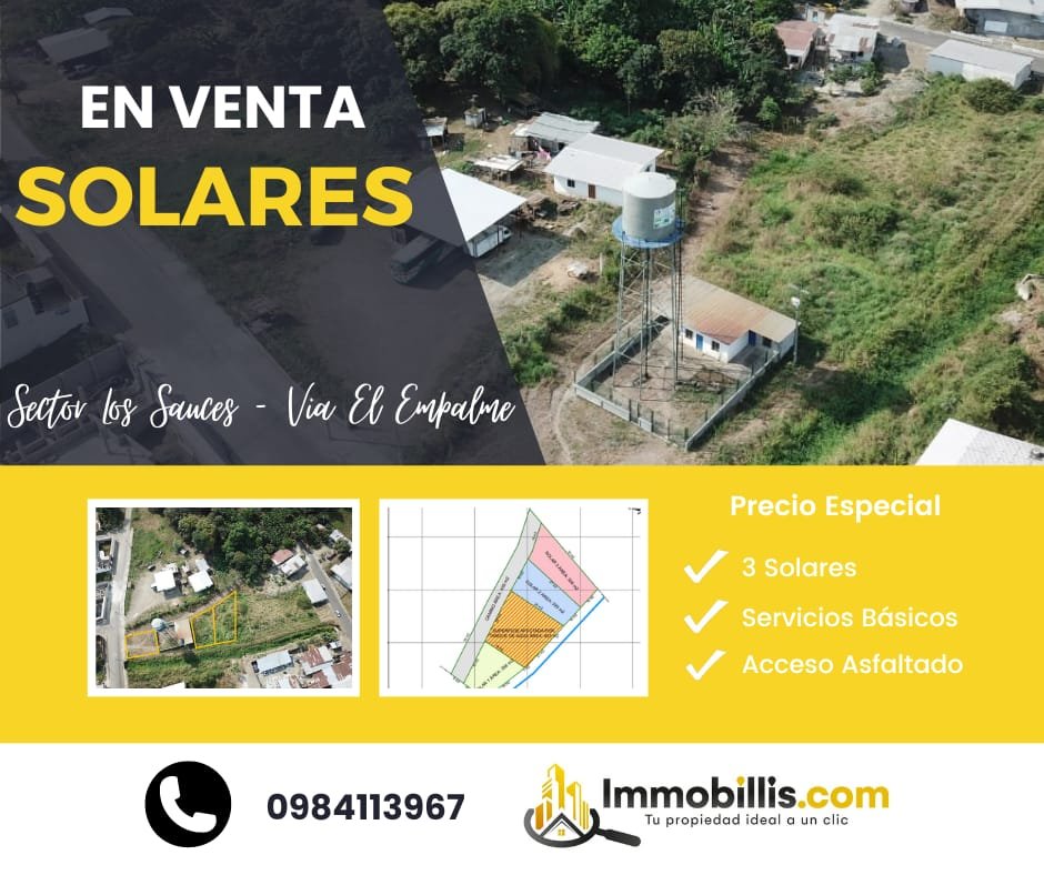 3 terrenos desde 190m2 hasta 500m2, con acceso a la asfaltada, servicios básicos a un minuto de la vía al Empalme.