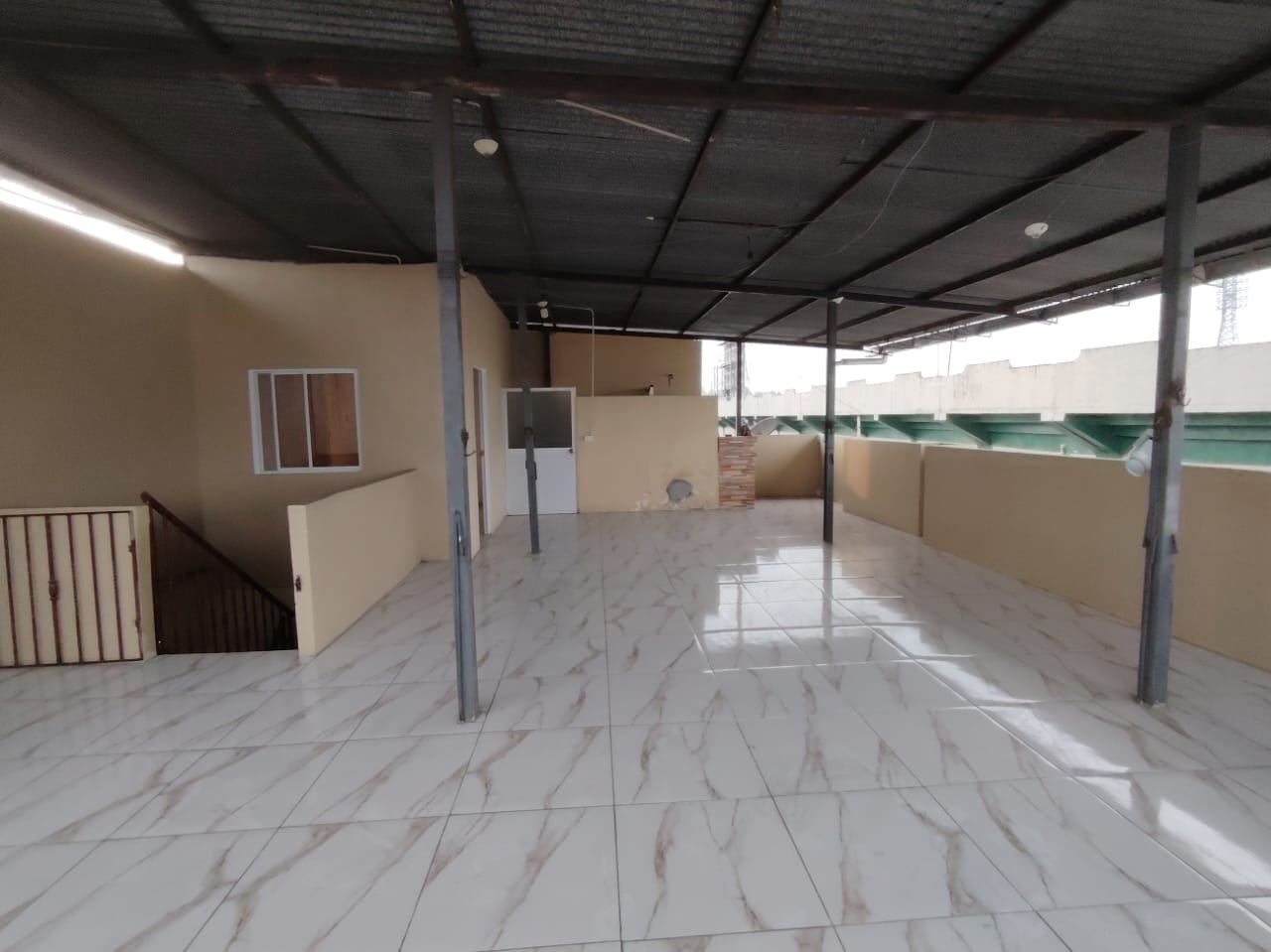 Habitaciones en el primer piso y una habitación en el segundo piso y terraza.